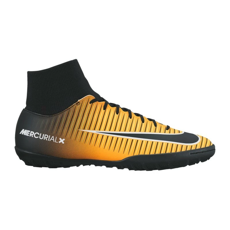 La MercurialX Victory VI Dynamic Fit TF combine une construction de tige sans languette avec une texture bosselée, afin de proposer une coupe, un toucher et une traction nécessaires aujourd’hui, avec la rapidité du jeu pratiqué.