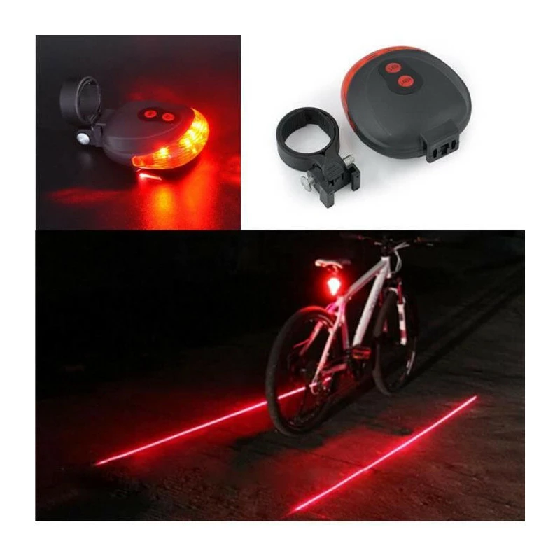 éclairage Vélo vtt lumière bicyclette lumière sécurité lampe 5 LED & 2 Laser arrière étanche . mode cadeau. Convient pour le tube 20-36mm. Matériel: ABS, plastique . 3 Mode: Strobe lent / Strobe rapide / normal. 2 x lance-laser en mode fixe ou clign