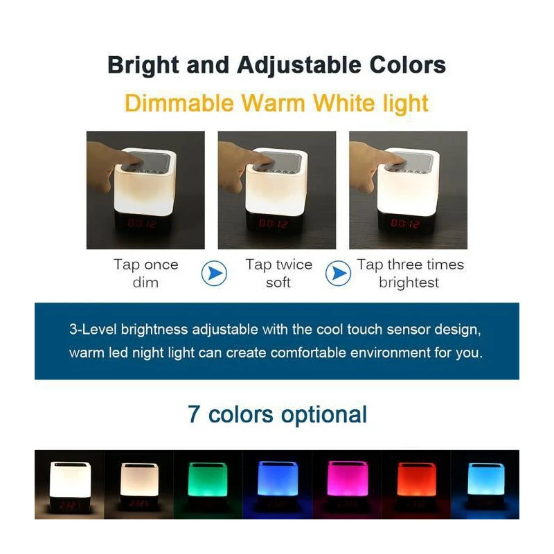IMAGE ET SON-SON-SON NOMADE-new-Couleurs lumineuses et réglables: le haut-parleur Bluetooth peut être une lumière de nuit de contrôle tactile, un haut-parleur Bluetooth, un lecteur MP3, un réveil numérique et une lumière de nuit dimmable. 7 couleurs en option, la lumière change de