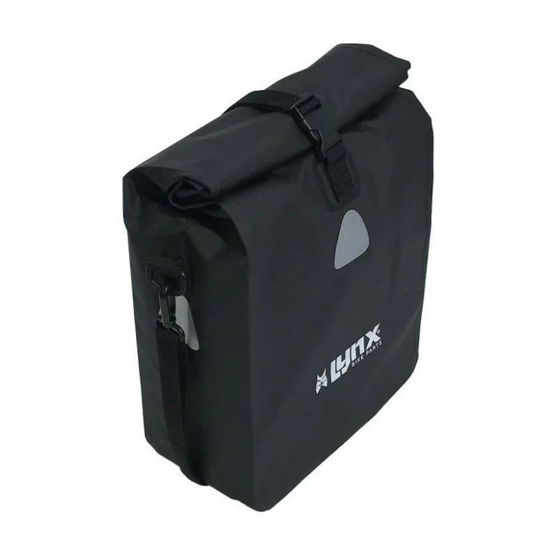 Lynx Pannier Tarpaulin Le Lynx Pannier est un sac à vélo polyvalent pour attacher à vos bagages. Vous accrochez le sac sur les supports en toute sécurité. Avec les coutures soudées du sac convenant à une utilisation intensive et plus aussi complètement imperméable à l’eau. spécifications: Couleur: Noir Sexe: unisexe Matière: PVC Type: Boucle Confirmation: crochets Capacité: 16 litres Dimensions: 26 x 47 x