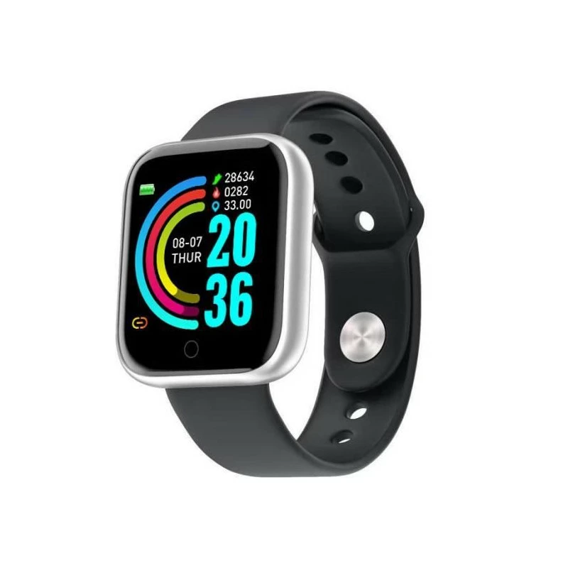 MAX Montre Connectée de Sport Y68 Argent, IP65 Étanche 1,3- Carré Square Tracker Smart Watch App Fitpro