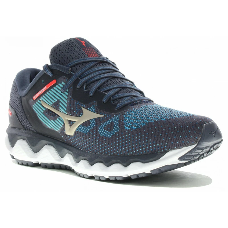 La chaussure Mizuno Wave Horizon 5 pour homme à la foulée universelle à pronatrice est idéale lors de vos sessions de running sur les routes et chemins tracés.