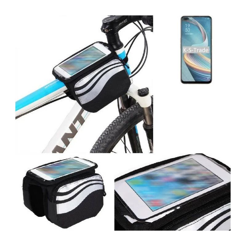 Pour Oppo A92s Sac cadre Sacoche de vélo Sac de Guidon Etui Vélo bicyclette bagagerie housse noir-argent imperméable 1x – K-S-Trade®