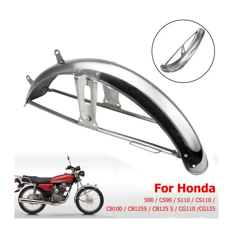 Emballage inclus : 1 x Garde-boue Avant de Moto Spécification : Condition: 100% tout neuf Numéro de modèle: A37562 Nom du produit: garde-boue avant Matériel: acier inoxydable Couleur: chrome Longueur: 60.5cm Placement: avant Fitment: Pour Honda S90 / CS90 / S110 / CS110 / CB100 / CB125S / CB125 S / CG110 / CG125 Caractéristiques : 1.Protégez le corps de la moto contre la boue, la poussière, la neige, la gadoue ou