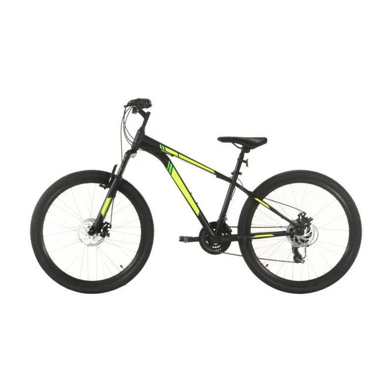 Couleur : noir Matériau du cadre/de la fourche : acier Matériau des jantes de roue : aluminium Longueur totale : 185 cm Hauteur du guidon : 100 cm Diamètre de la roue : 68 cm (27,5 pouces) Hauteur de la selle : 95 cm Hauteur du cadre : 38 cm Freins à disque Fixation rapide du support de selle Transmission à 21 vitesses avec dérailleur Shimano L’assemblage est requis