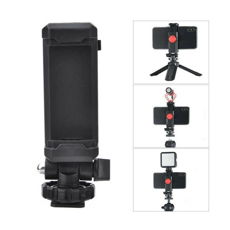 Le téléphone peut être placé sur l’appareil photo en tant que moniteur. Équipé d’une griffe sur le dessus, il peut fixer un microphone, une lampe photographique et d’autres équipements. Le support de téléphone avec support pour sabot dispose de deux